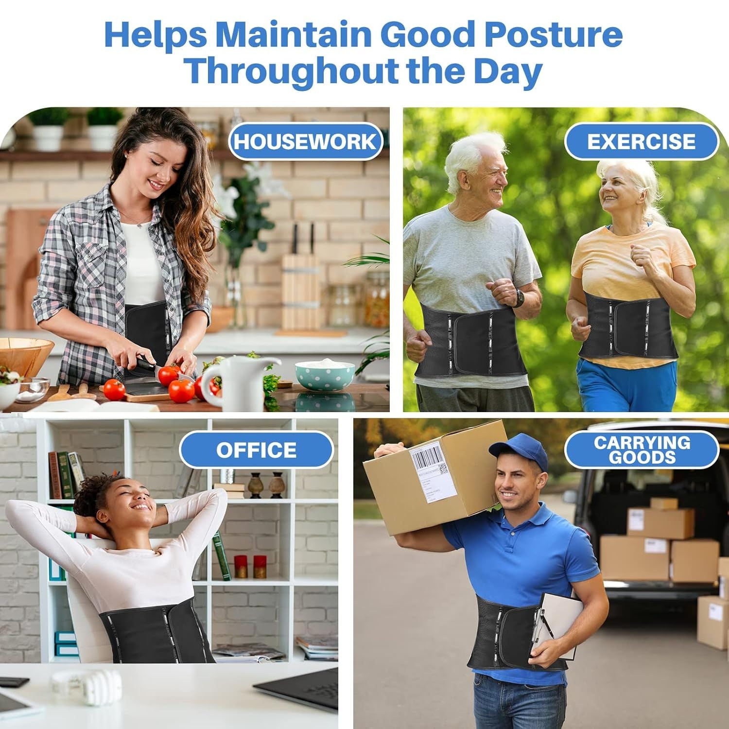 4.Apoya el bienestar general: mantente en forma y activa a pesar de tener problemas de espalda mientras usas un soporte de espalda para mujer que es excelente para un uso prolongado. Utilízalo como soporte de espalda para levantar y entrenar o como soporte de postura para mujeres.