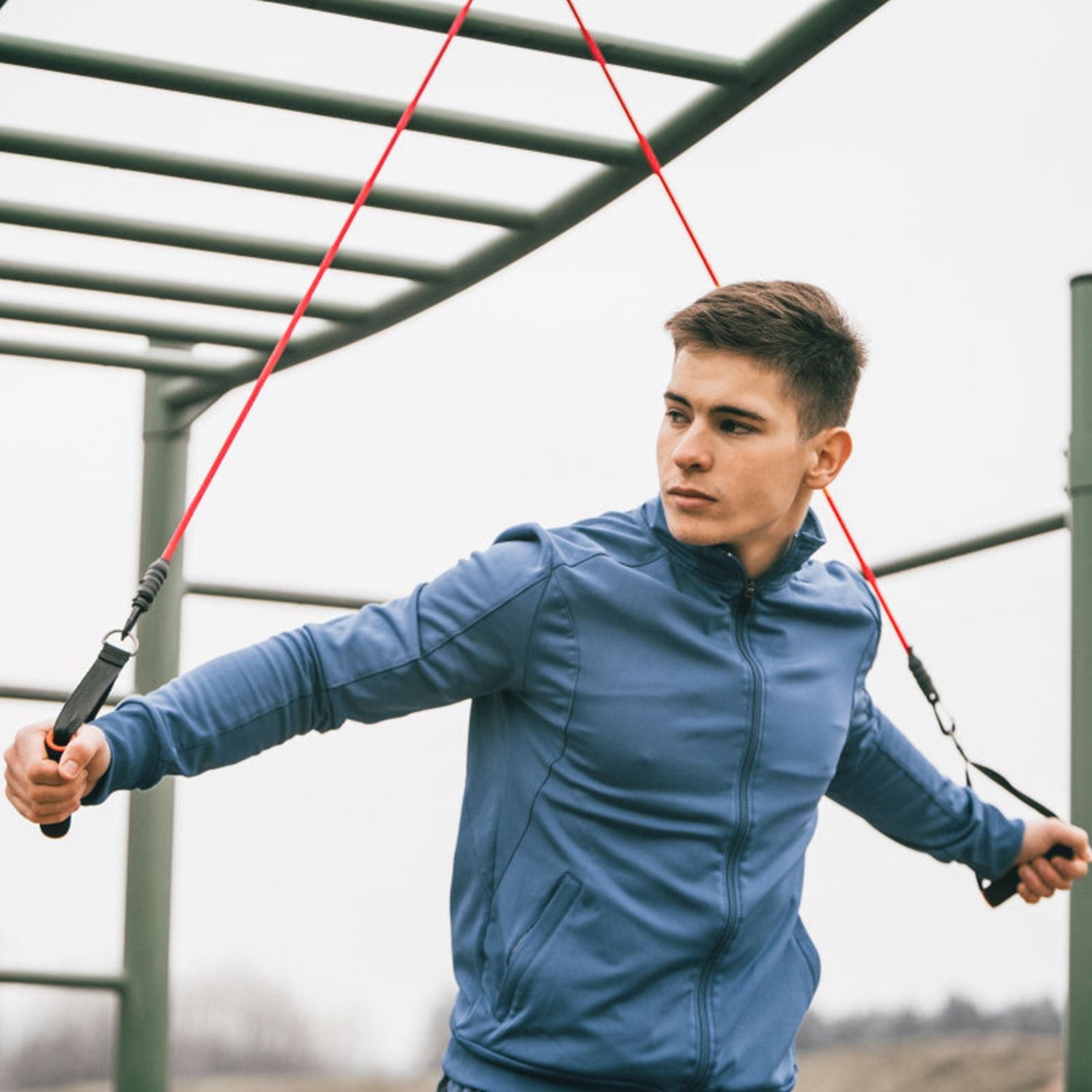 *Stackable Bands For Adjustable Resistance Levels*:The 5 color-coded bands are designed with different weight tension(Yellow-10lbs,Red-15lbs,Blue-20lbs,Green-25lbs,Black-30lbs). Each band is 48inches in length and stackable in any combination with other bands up to a maximum resistance level up to 100lbs,helping you to choose the suitable fitness level and get the optimal workout result.