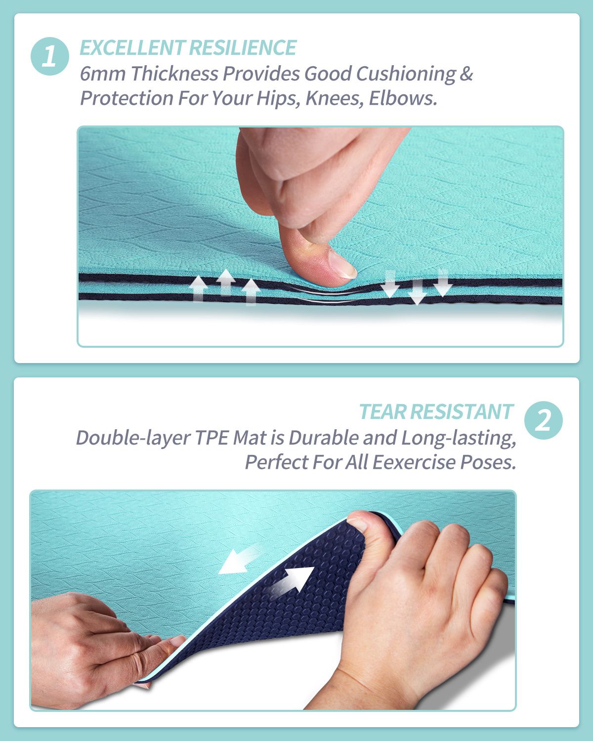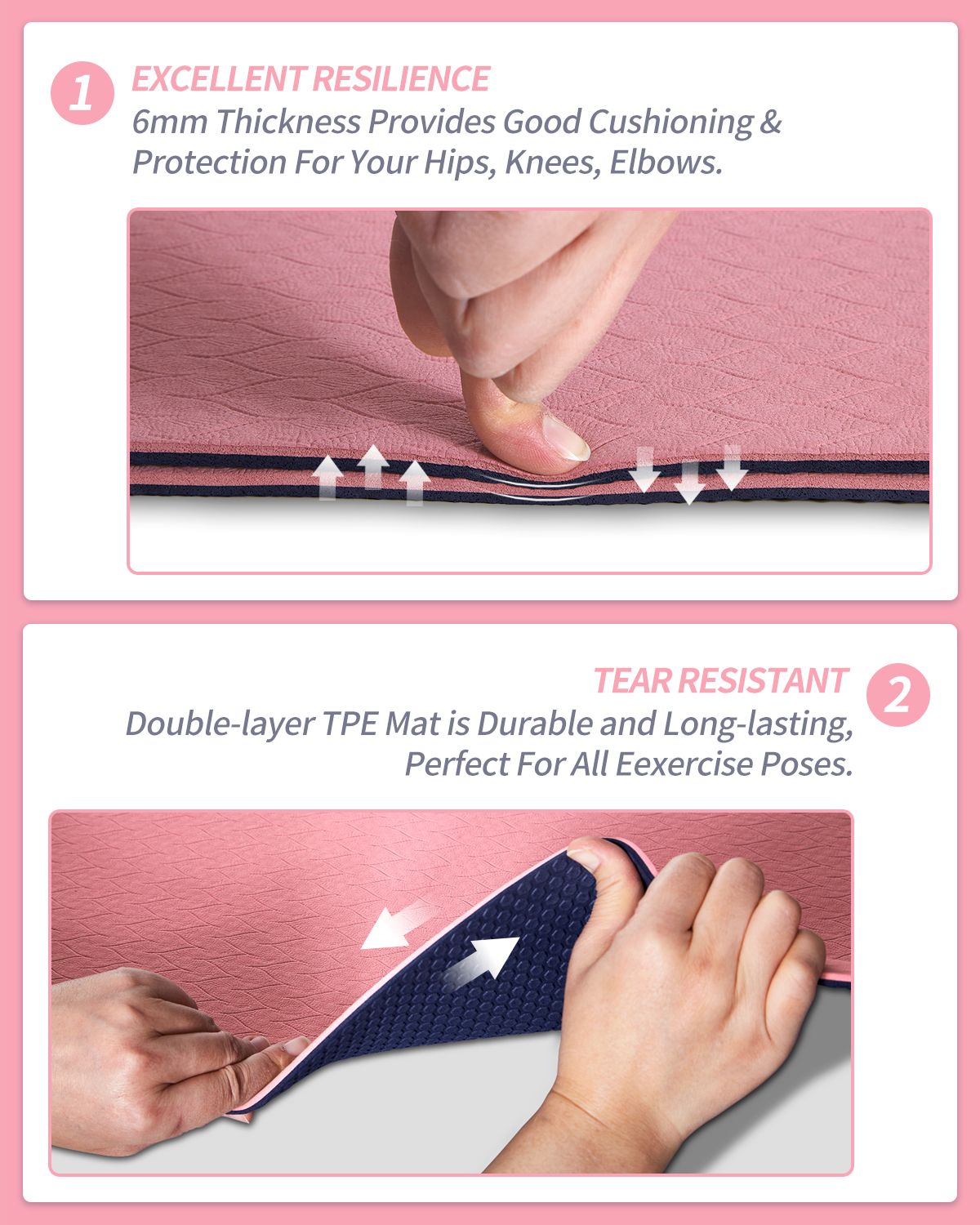 COOLMOON TPE pilates mats carry out the technical improvements basic on traditional workout mats. So, compare to PVC, EVA and NBR mat, this fitness mat has higher elasticity, better abrasion.