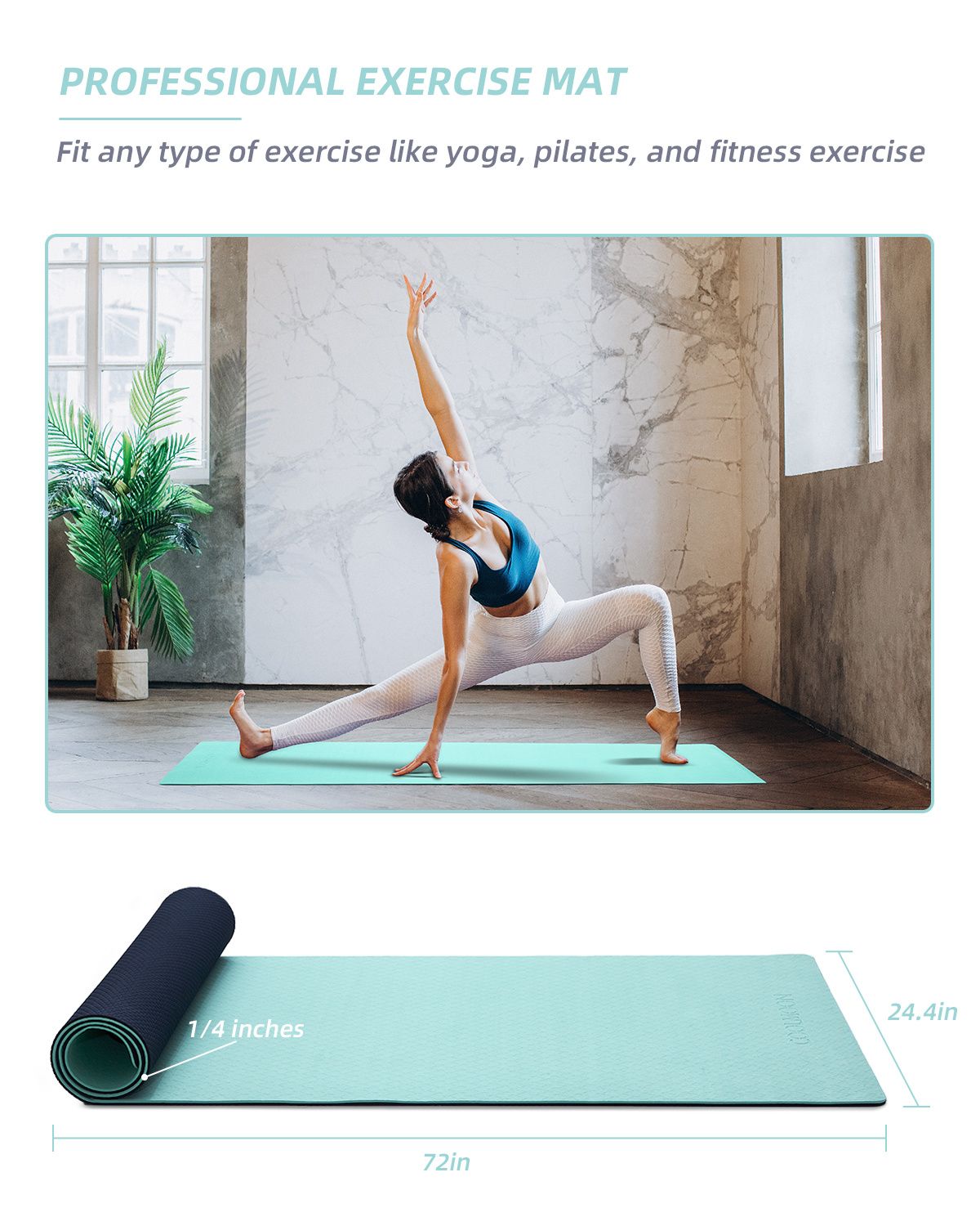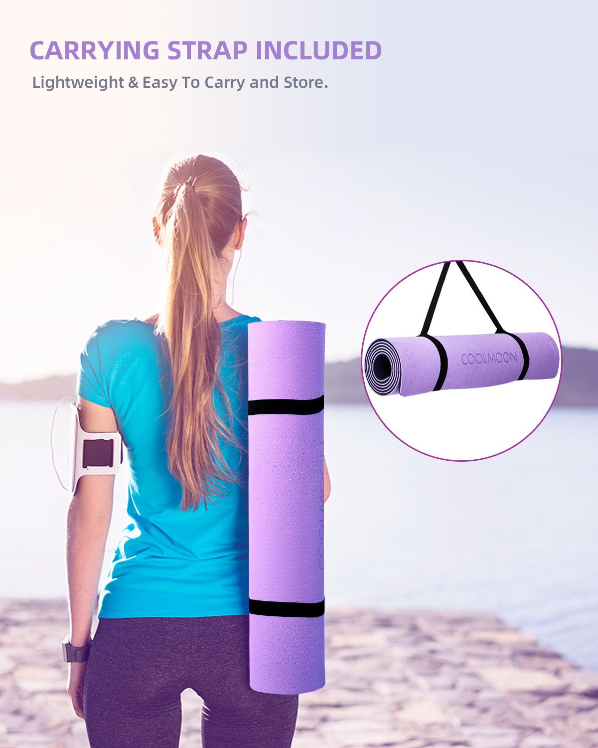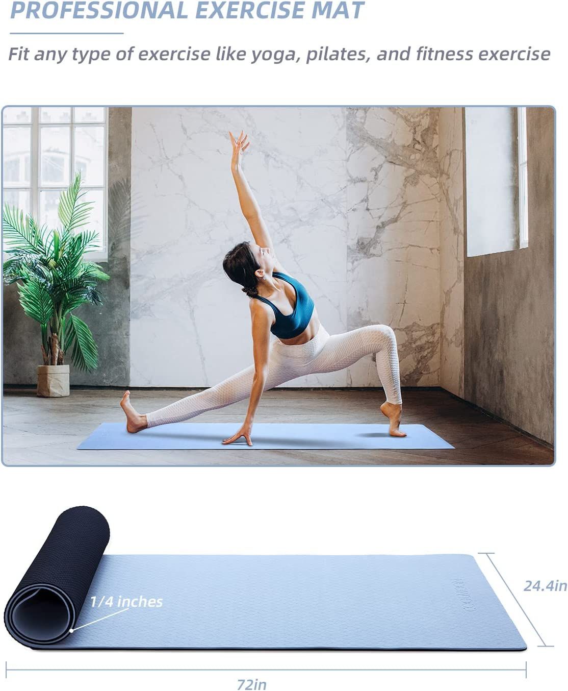 COOLMOON 1/4 Inch Extra Thick Yoga Mat Double-Sided Non Slip,Yoga Mat For Women and Men,Fitness Mats With Carrying Strap,Eco Friendly TPE Yoga Mat , Pilates And Exercises Mat
