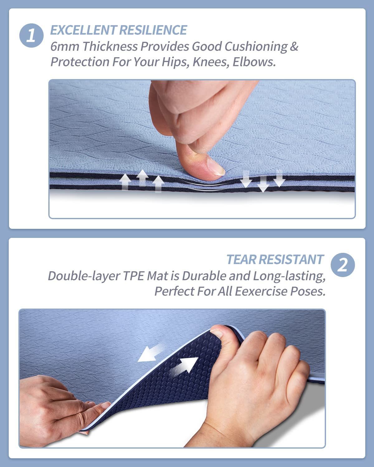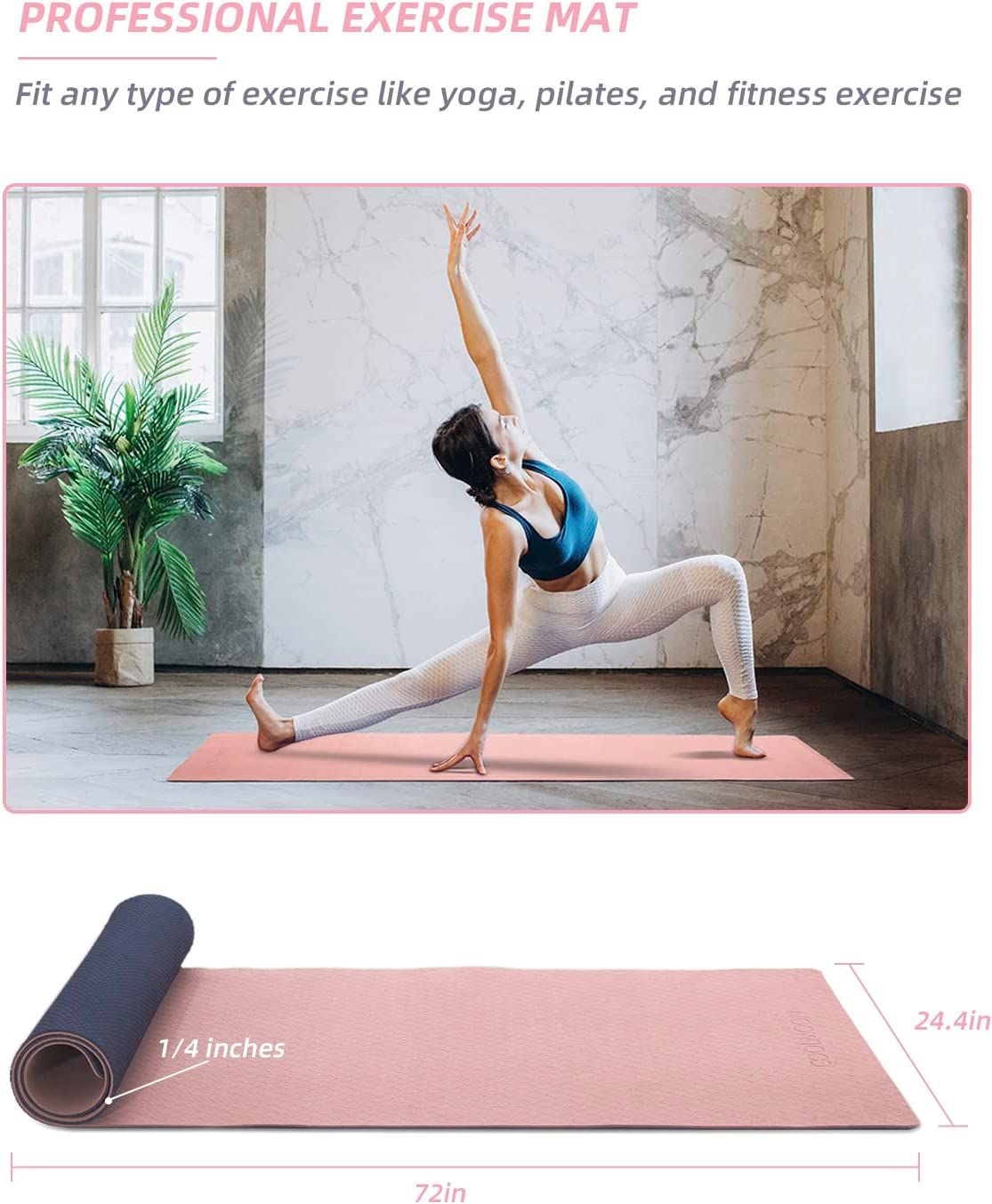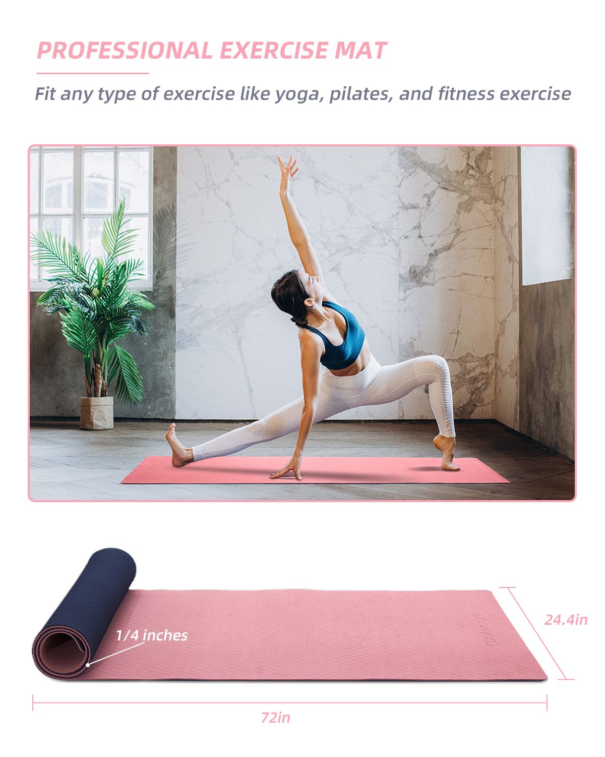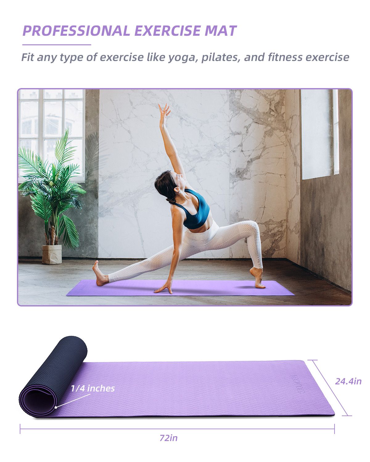 COOLMOON 1/4 Inch Extra Thick Yoga Mat Double-Sided Non Slip,Yoga Mat For Women and Men,Fitness Mats With Carrying Strap,Eco Friendly TPE Yoga Mat , Pilates And Exercises Mat