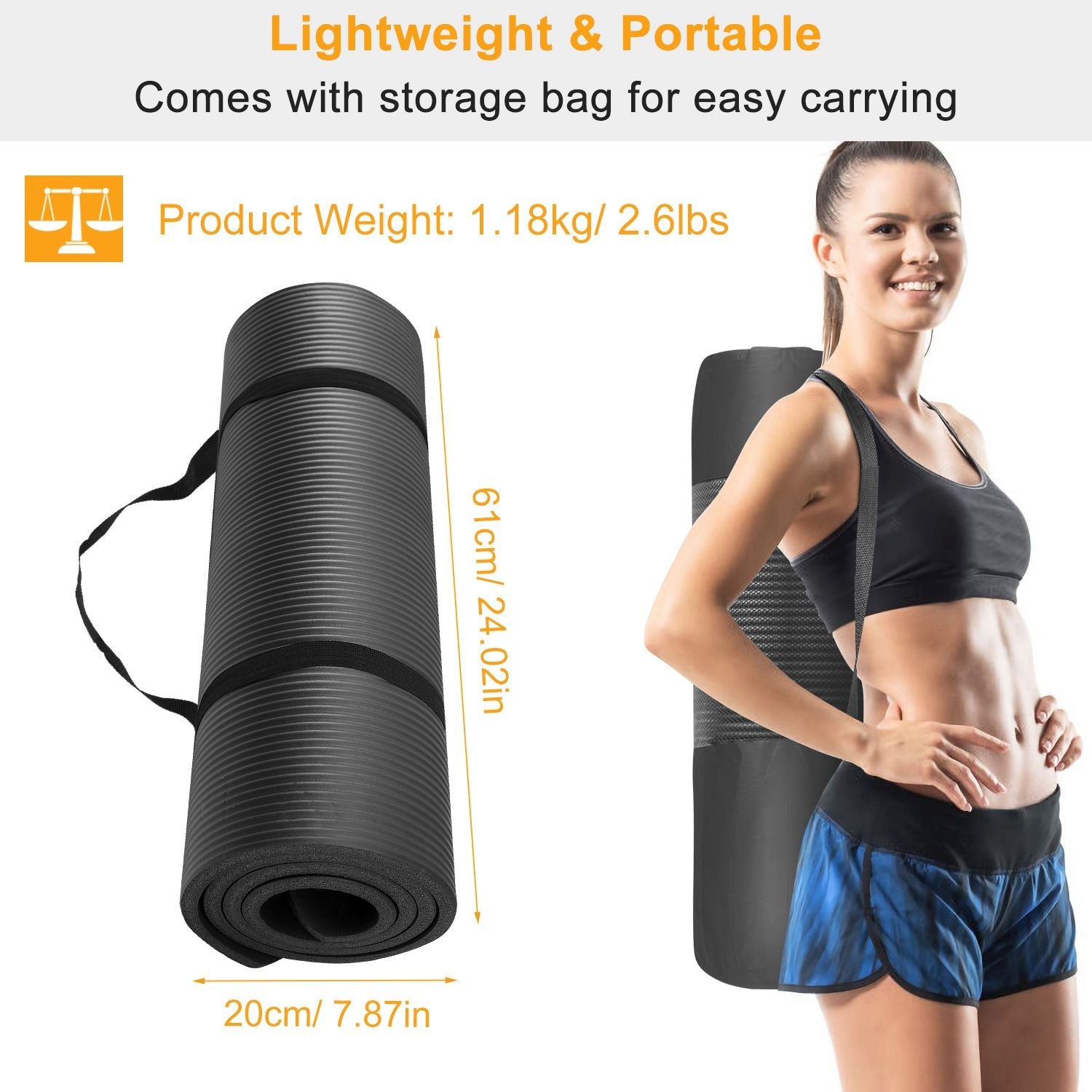 **FREE STRAP & STORAGE BAG*:With lightweight(2.51lbs) design,and the included free strap and storage bag. It's super convenient for you to store your yoga mat and easily take with you for outdoor use. No need to struggle with carrying the entire mat in your arms.