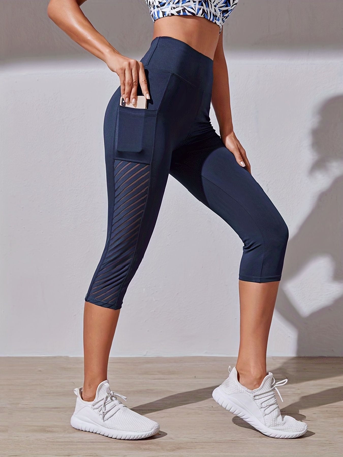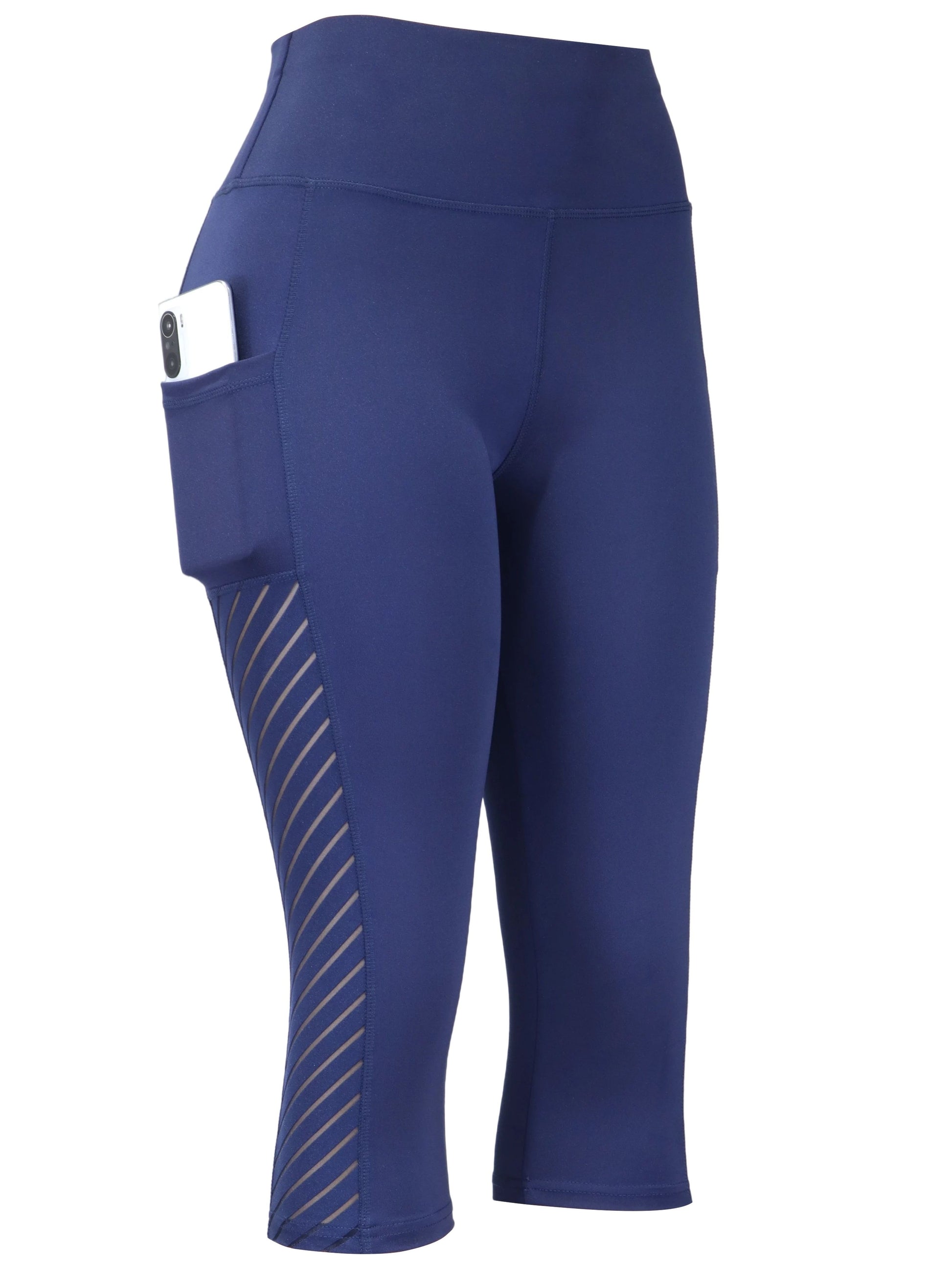 High Waist Yoga Capri Pants, Tummy Control Sports Legging Capri For Women With Out Pockets And Mesh Design