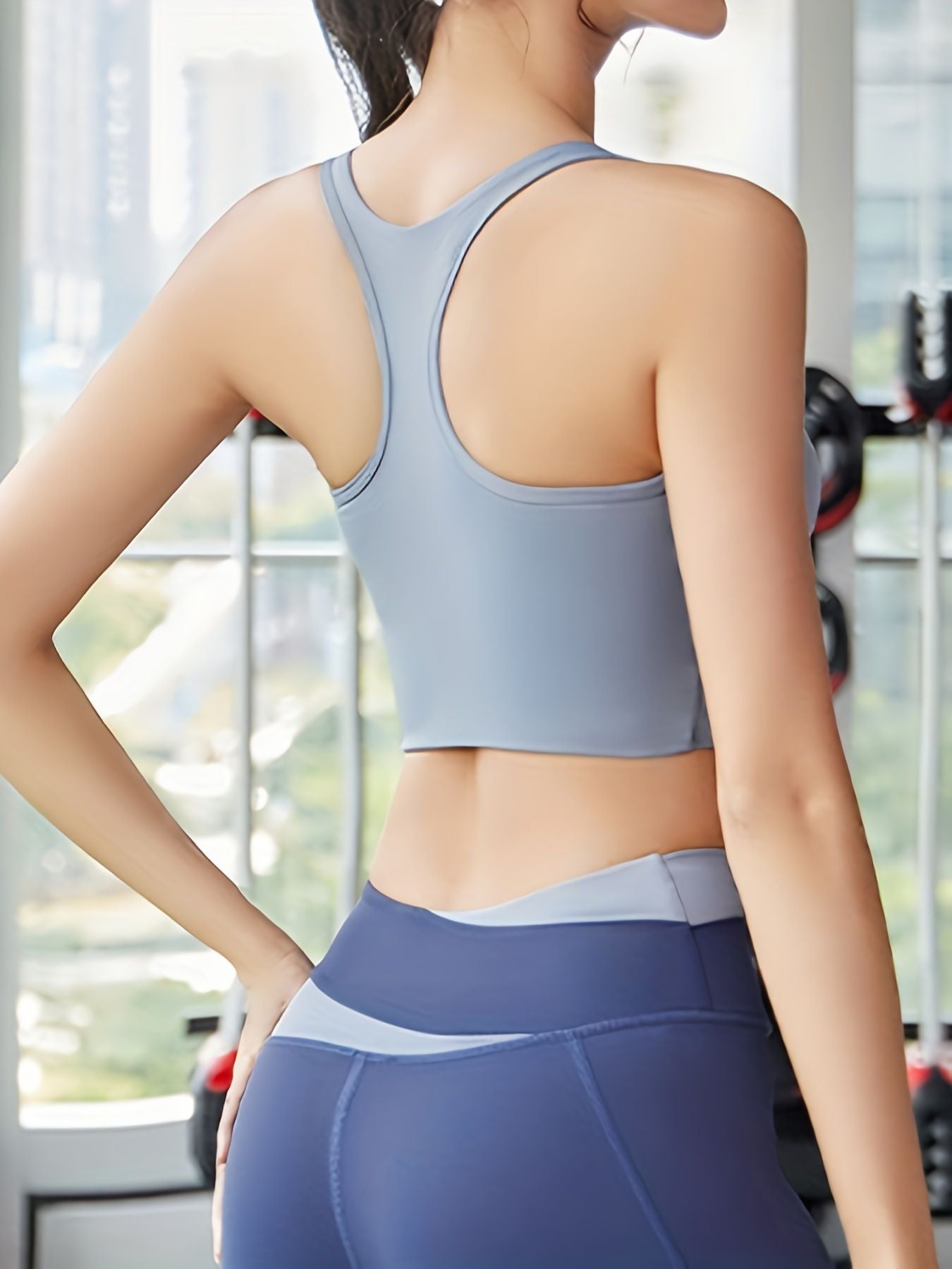 2 Pieces Contrast Color Patchwork Yoga Set, Wide Strap Sports Bra & Overlap Leggings, Women's Activewear