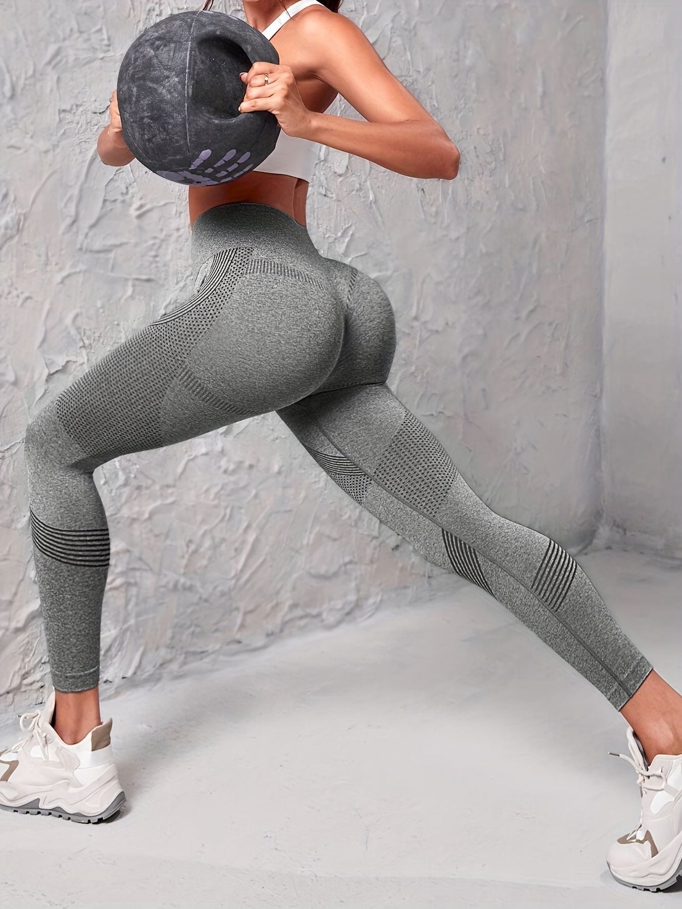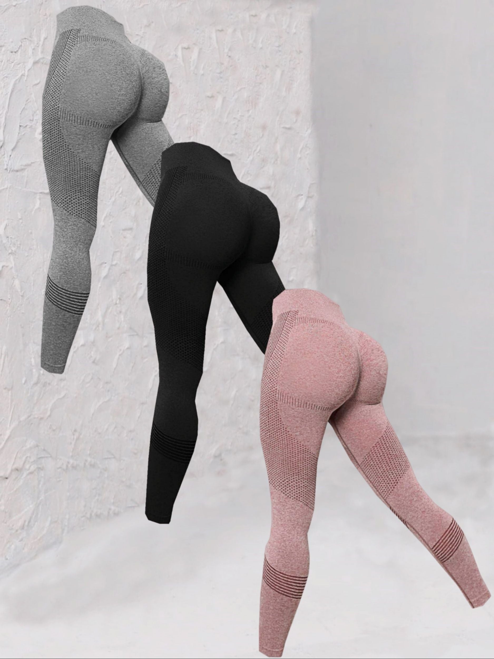 3pcs Seamless Striped Yoga Leggings For Women, High Stretch Slim Fitted Workout Gym Sports Pants, Women's Activewear