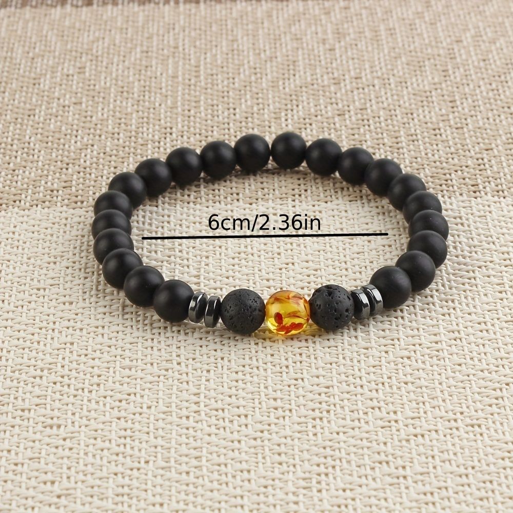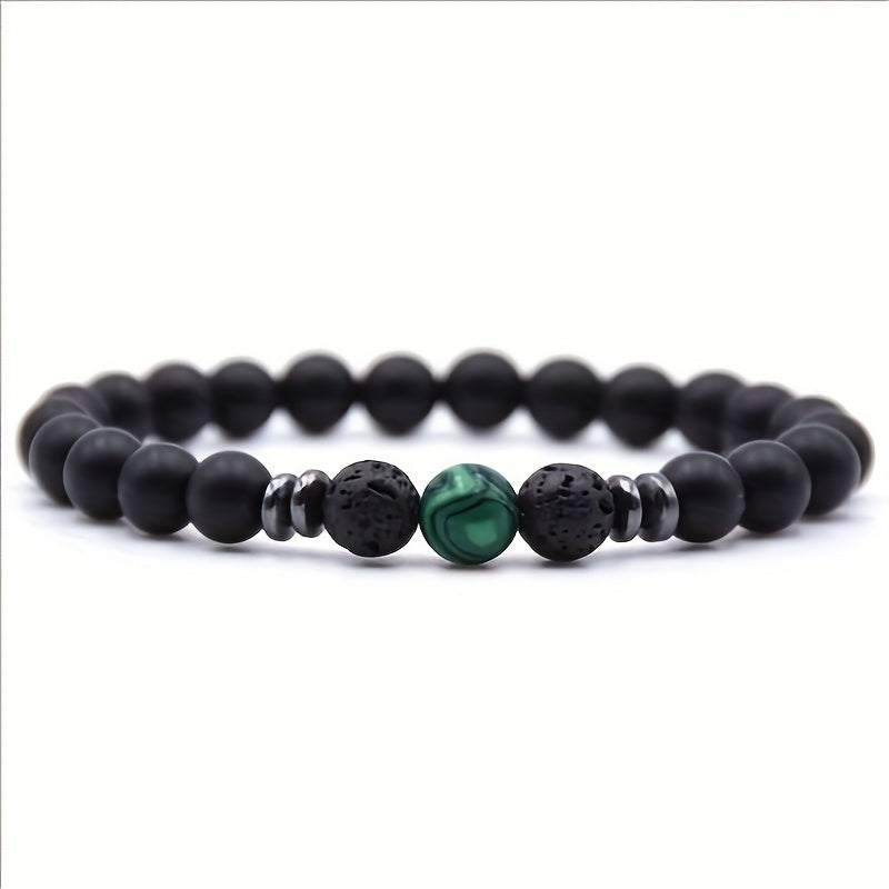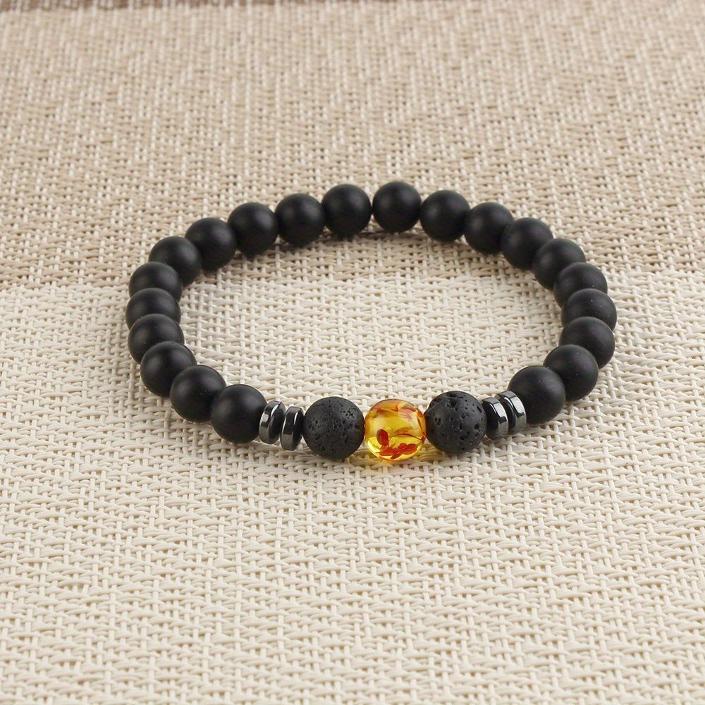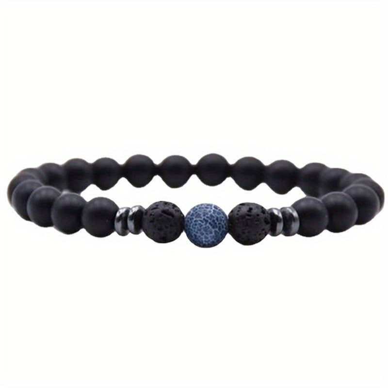 Black Frosted Stone Stretch Beaded Bracelets Gifts For Women Men Silver Plated Energy Healing Yoga Meditation Bangle Jewelry