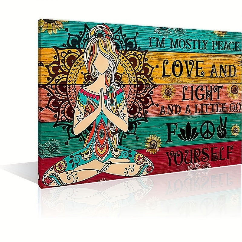 1pc Yoga Girl Painting For Home Walls Peace Love And Light Wall Art Canvas Print Sunflowers Artwork Giclee House Decor No Frame